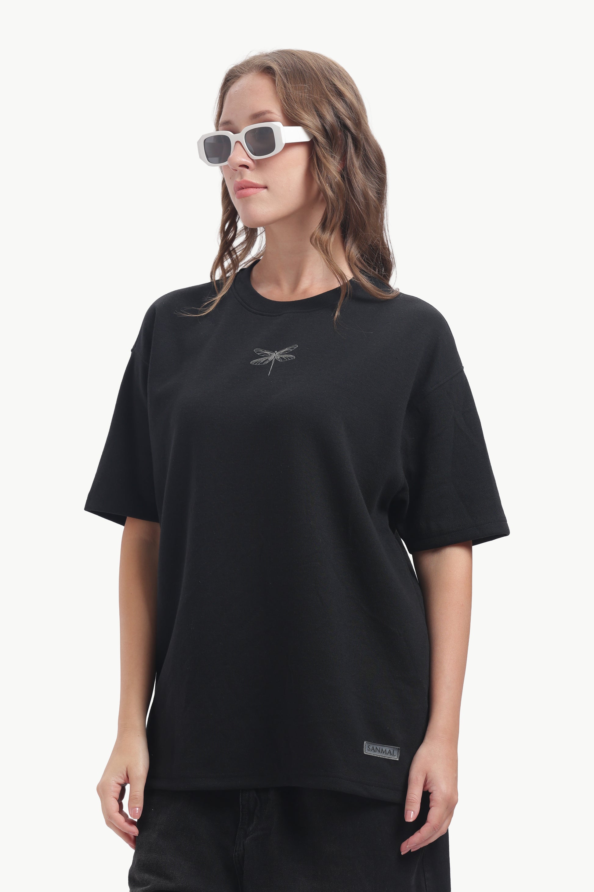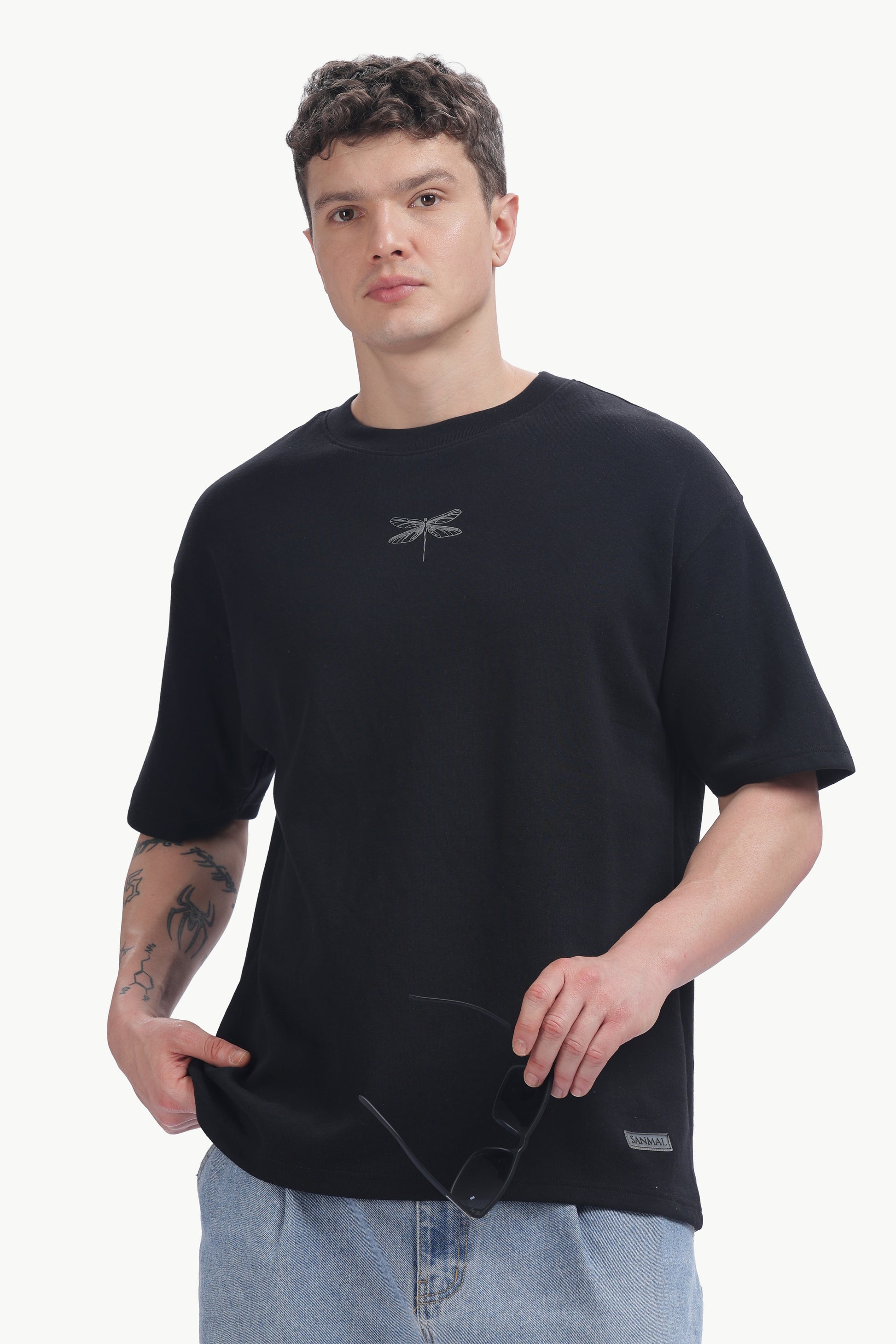 Relaxed Fit Interlock Unisex T-Shirt | Black with HD Butterfly Print