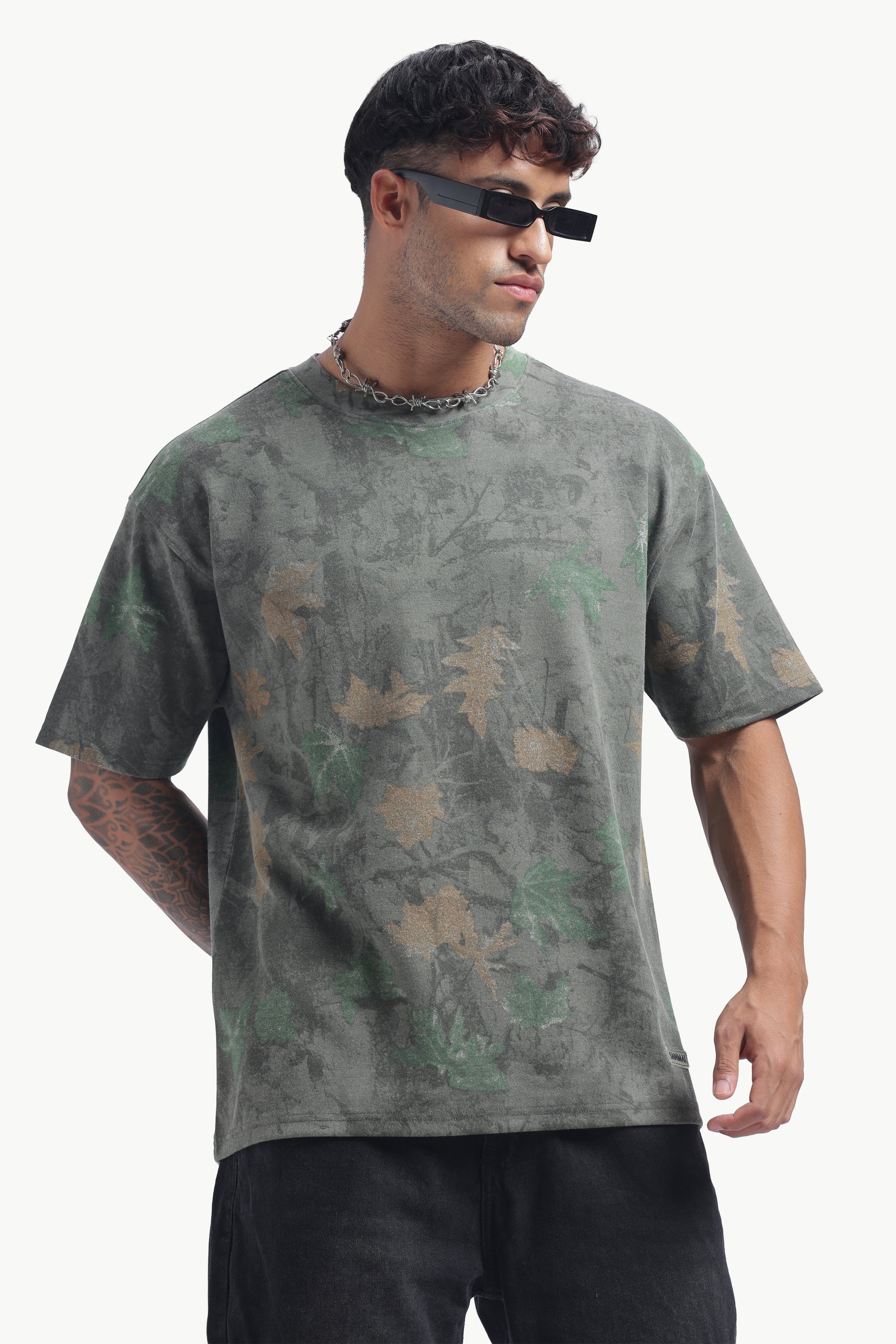 Style with confidence in this premium green printed t-shirt from SANMAL, featuring a trendy front print and a signature deer logo embroidery on the back.